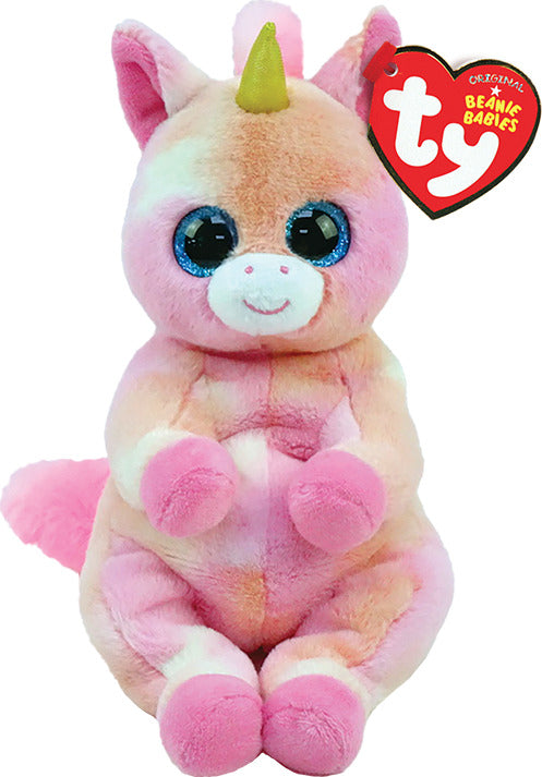 This snuggly, soft and sweet unicorn is ready to be invited to your next play date! Beanie Bellie Skylar may not have hands to hold a tea cup, but is always up for a game of hide and seek or a round of duck-duck-goose. Just watch out for the shiny golden horn!