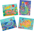 A beginners’ mosaic kit. There are 4 designs to complete with little glittery foam squares and rhinestone stickers. Children look for the numbers, then stick the pieces onto the right places on the board. As the boards are covered in decorations the merm
