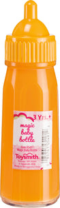 This assortment of Magic Baby Bottle toys from My Sweet Baby includes 2 drink styles with colorful liquid that disappears when tilted for feeding baby. Bottles refill when bottle is stood straight again. Liquid looks like milk or orange juice. Milk bottle is 4.75 inches tall. Orange juice bottle is 4 inches tall. Made with high-quality, nontoxic plastic and featuring lifelike designs and mL markings.