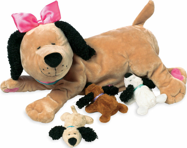Children will adore these unique stuffed animals that celebrate the joys of caring for little ones. Three busy pups cuddle up to their mother and attach with magnets, but can also play on their own. Collect both styles of Manhattan Toy's Nursing Pet stuffed animals today!