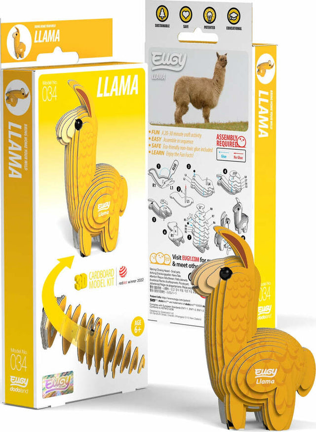 EUGY - a super-fun 3D puzzle that's eco-friendly and can be assembled in 10 to 20 minutes! Assemble this llovable Llama 3D puzzle and experience the magic of EUGY!