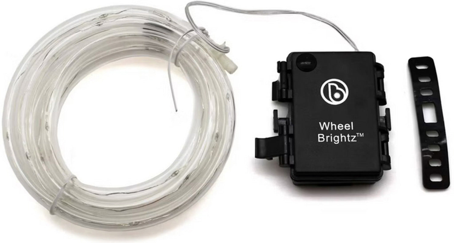 Let's glow! Wrap this 7' LED light tube around any bike frame or any standard bike wheels 20" or larger to light up the night in style cruising along. It's a great way for kids (and fun-loving adults!) to add a splash of personality and a little more visibility to their rides. Weather-resistant and easy to install, Wheel Brightz Color Select uses 20 micro-LED lights to cycle through a rainbow of color or lets you stop on your favorite color! Includes battery pack and simple, tool-free mounting hardware. Requires 3 AA batteries, not included, for 48+ hours of light.